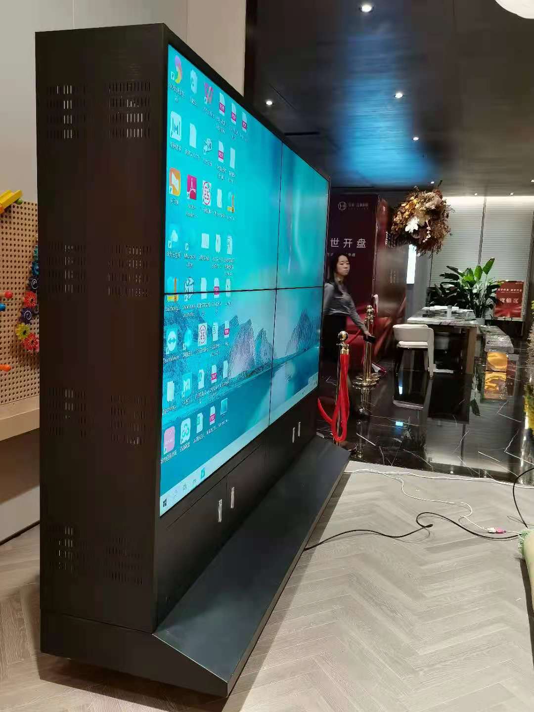 银城某售楼处55寸3.5mm拼接屏移动机柜案例